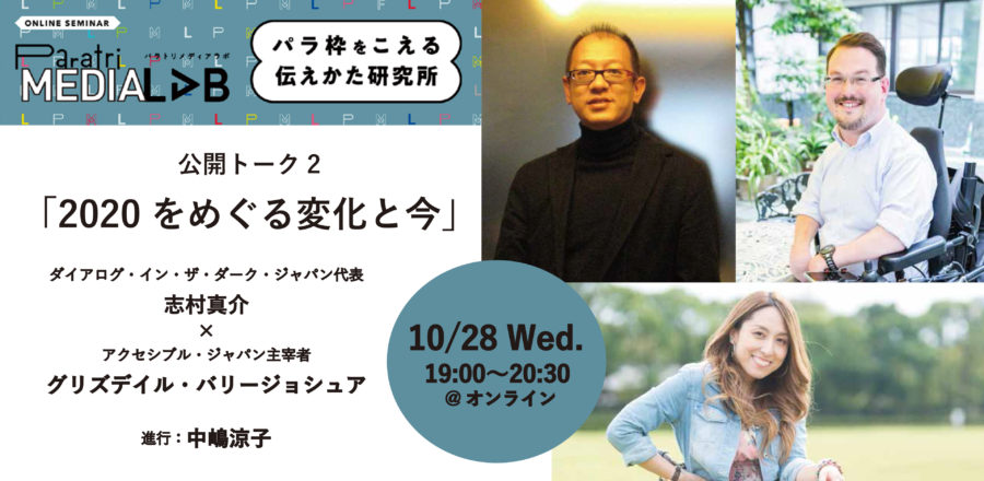 ダイアローグ・イン・ザ・ダークの志村真介さんとアクセスブルジャパン主宰のグリズデイル・バリージョシュアさんとのトークを、通常2,000円のところ無料でご招待します。「つたえかた」に関心のある人はぜひ! トーク詳細はこちら。